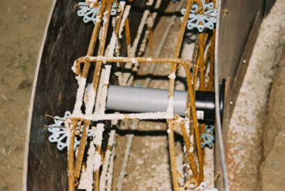 Bild 15: In der Umrandung sind 150 Eisenbügel, 480 m 10 mm Eisenstangen a.6 m eingebracht worden.