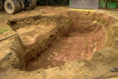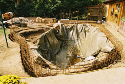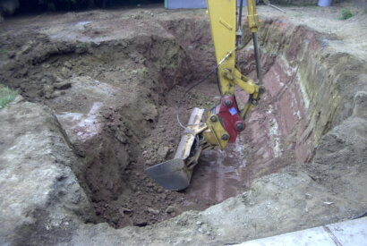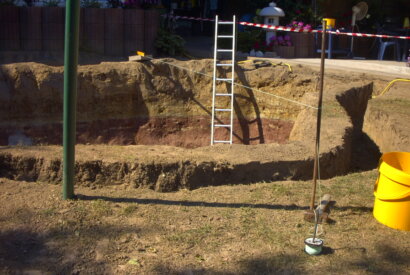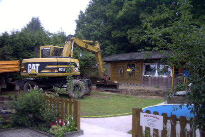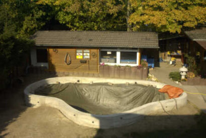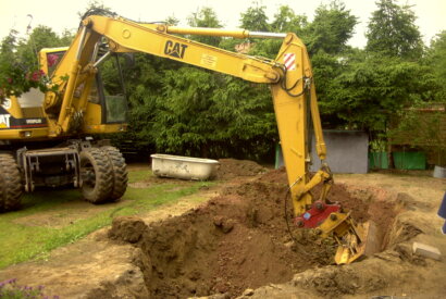 Bild 7: Der Koiteich wird jetzt mit grossem Gerät vergrössert.