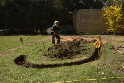 Bild 2: Zeigt die Kräftige Unterstützung meines Sohnes wie wir die Umrandung prov. Ausheben.