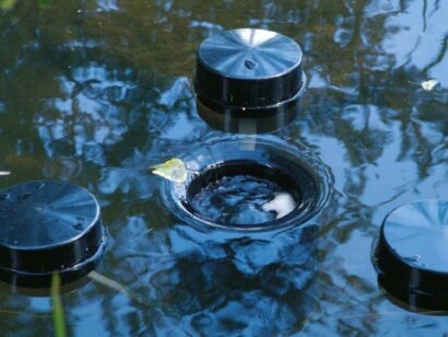 Skimmer ermöglichen das Absaugen von Schmutzpartikeln an der Wasseroberfläche, bevor diese zu Boden sinken und den Teich verunreinigen.