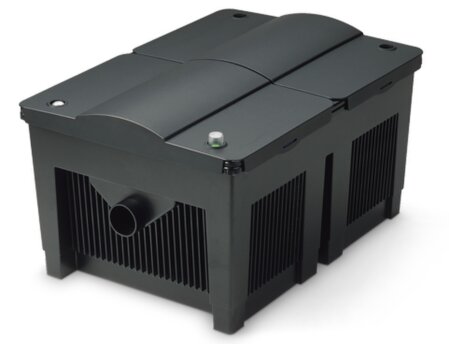Leistungsstarker Durchlauffilter für Garten- und Fischteiche. Die Kombination aus Filterschaum und integriertem UVC-Vorklärgerät sorgt für beste Filterleistungen: Diverse Filterschwämme übernehmen die optimale mechanische und biologische Filtrierung. Zum Säubern hat der Durchlauffilter Reinigungshebel zum Ausdrücken der Filterschwämme, einen Bodenablauf und einen Klarspülanschluss.